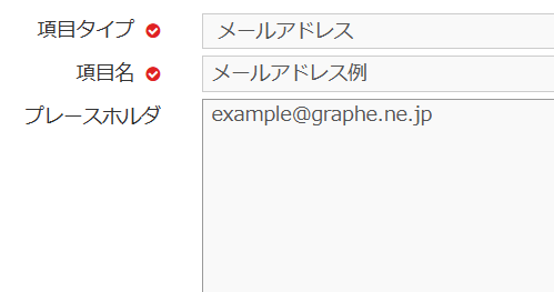 メールアドレスの登録に適した項目タイプです。メールアドレスとは異なる形式で入力がおこなわれると、エラーメッセージが表示されます。下記のように表示されます。