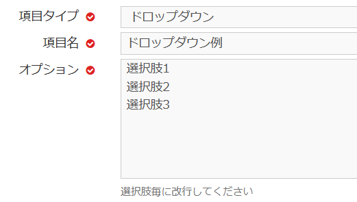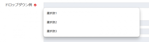 ドロップダウンで選択できる項目タイプです。下記のように表示されます。