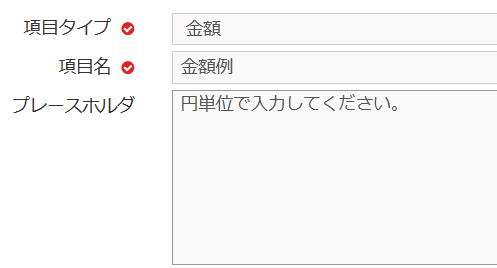 金額の登録に適した項目タイプです。整数以外の入力がおこなわれると、エラーメッセージが表示されます。下記のように表示されます。