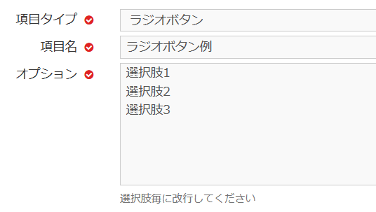 ラジオボタンで選択できる項目タイプです。下記のように表示されます。