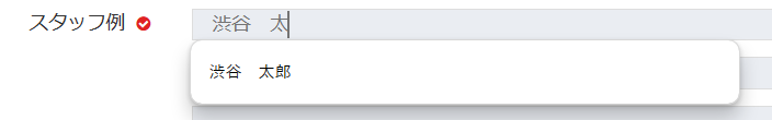 スタッフの登録に適した項目タイプです。フォーム内に入力すると、Armadaに登録されているスタッフが入力候補として下記のように表示されます。