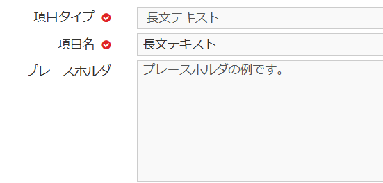長い文章の登録に適した項目タイプです。短文テキストと比較して入力フォームが大きくなります。下記のように表示されます。