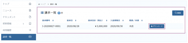 また、ユーザはマイページの請求一覧画面から請求書をダウンロードできます。