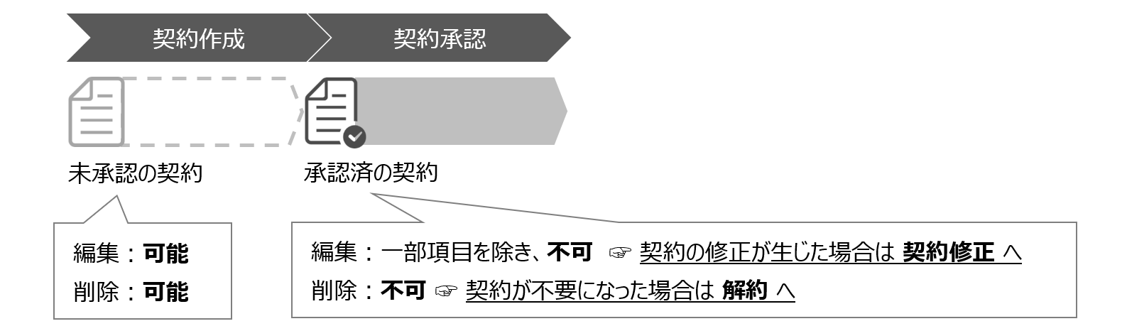 契約の編集・削除の可否は、承認前と承認後で異なります。