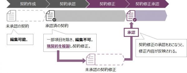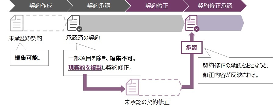承認後に契約の修正が生じた場合は、『編集』ではなく、契約修正ウィザードを用いて契約の『修正』をおこないます。