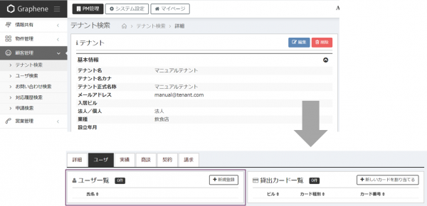 テナントに属するユーザの登録・編集・削除・出力をおこないます。