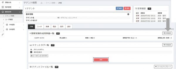 5.「テナントタグ一覧」の下部にある「削除」ボタンをクリックます。