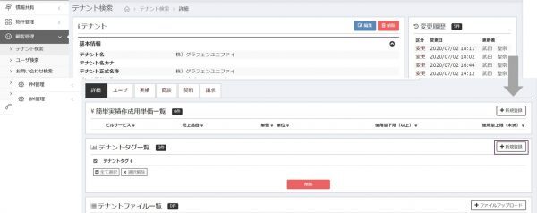 4.テナント詳細画面下部の「詳細」タブの、「テナントタグ一覧」の右端にある「新規登録」ボタンをクリックします。