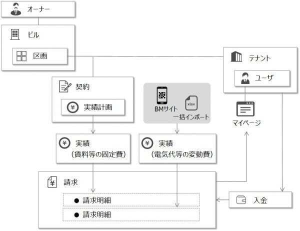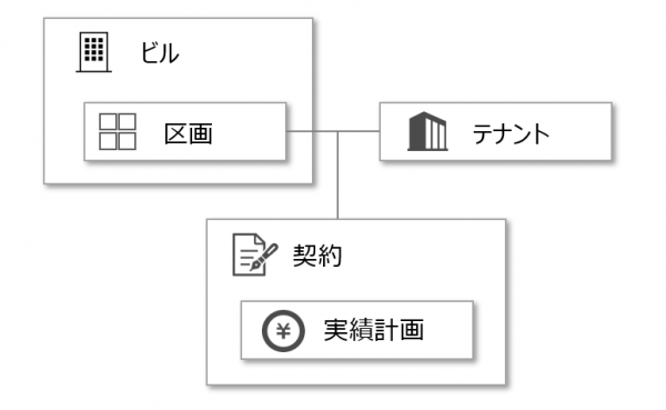 ビルの区画と、その区画に入居するテナントを紐づけて、契約を登録します。その際、月額賃料等の請求の予定を、「実績計画」として登録します。